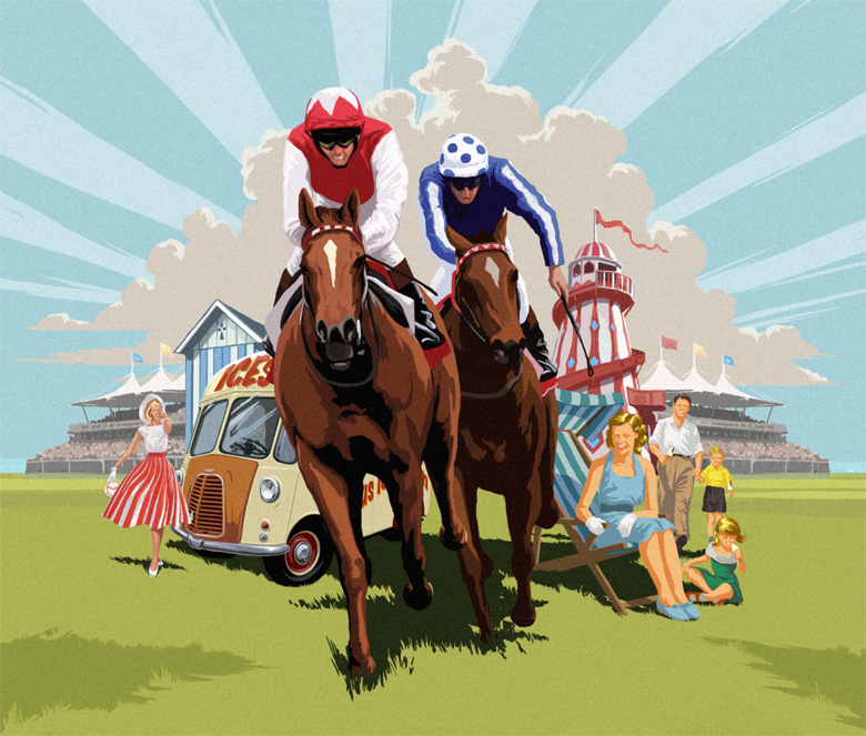 Retro poster style design to work over various promotional collateral for the Goodwood races.